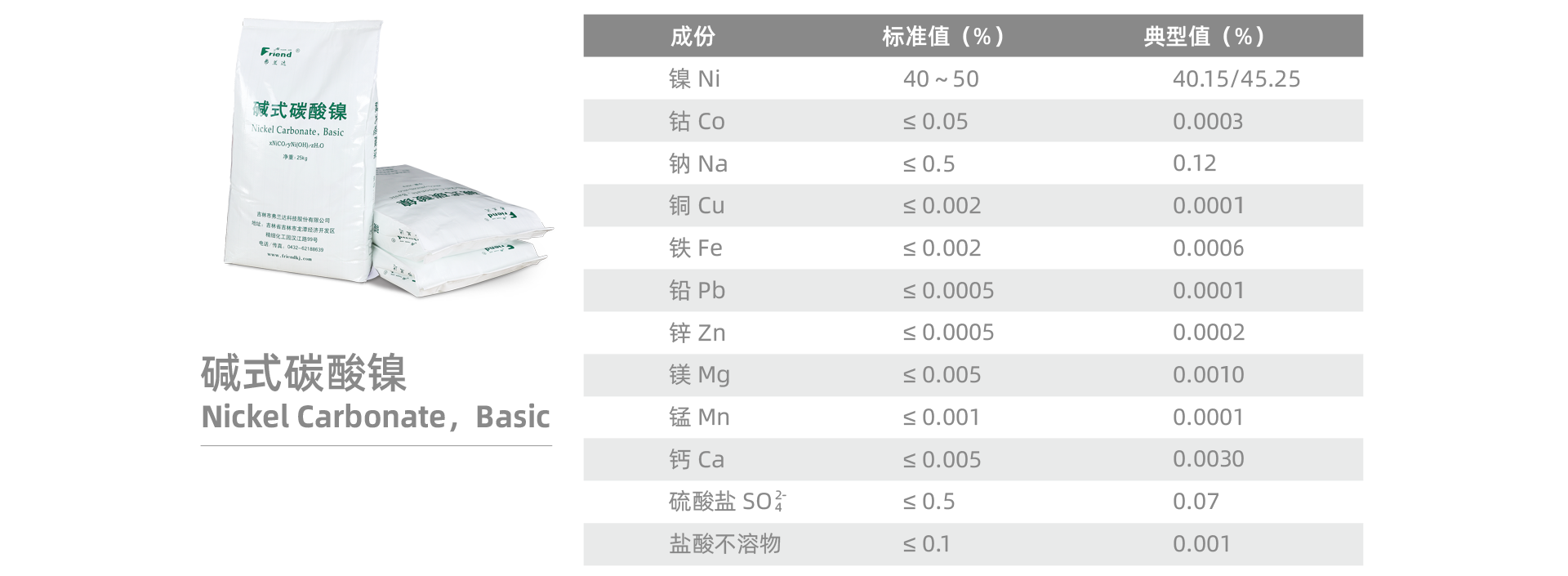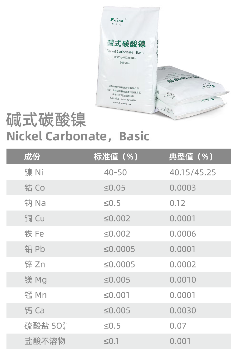 堿式碳酸鎳(Nickel Carbonate,Basic) 分子式:NiCO3 ?2Ni(OH)2 ?4H2O 分子量:376.63 性 狀:淡綠色粉末。 用 途:用于電鍍及制其他鎳鹽的原料。 包 裝:編織袋裝,每袋25公斤。 儲(chǔ) 運(yùn):運(yùn)輸過程中,防止雨淋,受熱,受潮。嚴(yán)禁與酸類物品混運(yùn)。貯存在通風(fēng)、陰涼、干燥的庫房內(nèi),防止雨淋、受潮。嚴(yán)禁與酸類物品混貯。